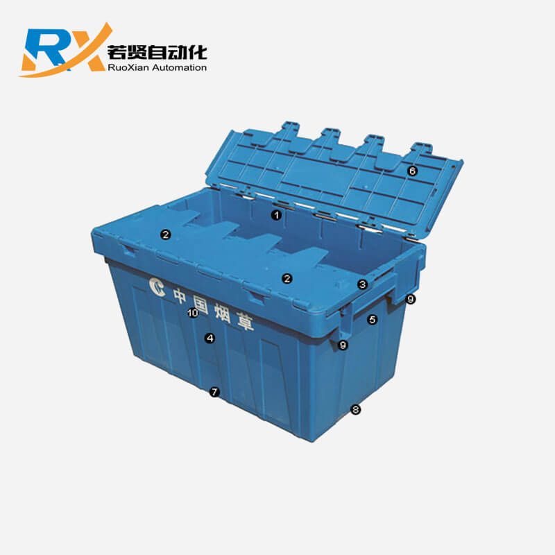 4. 箱體四壁加強筋設計提高裝載能力,并減少側壁的變形率,同時有大面積皮紋區,方便標簽頻繁撕帖。